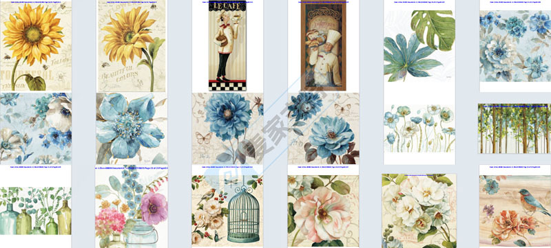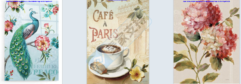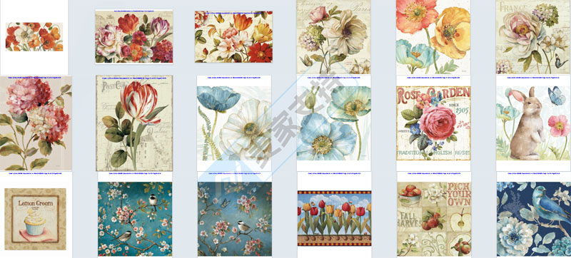 Lisa Audit以花卉、自然风景、鸟类、蔬果等为核心元素创作,风格融合复古与田园风,兼具艺术美感与装饰性,部分作品还融入仿旧纹理、欧式文字等元素,营造出浪漫怀旧的氛围。Lisa Audit在美国注册有高达46个美国有效版权,涵盖向日葵、罂粟花、鸟类等高频侵权元素。