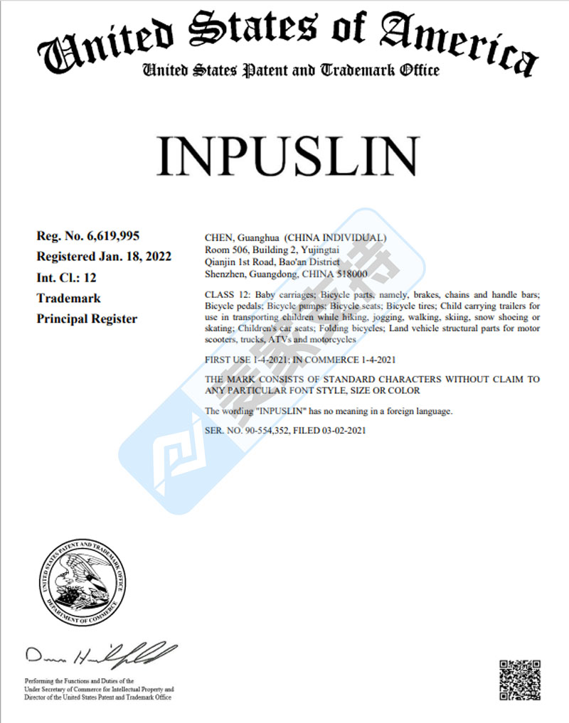 本案是Yunting law代理Guanghua Chen发起的商标维权案件,涉案商标INPUSLIN,商标号为6619995,注册在第12大类,涵盖婴儿车、自行车零件、自行车脚踏板、打气筒、座椅、轮胎等等类目,未经授权使用会面临侵权TRO冻结风险!