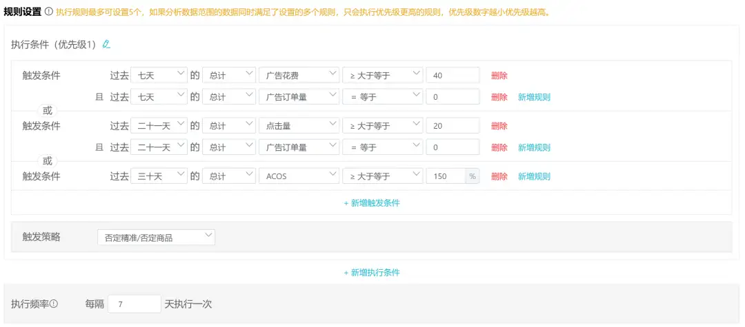 你可以根据产品的客单价、目标ACOS、平均转化率等关键指标,灵活设置否定阈值。