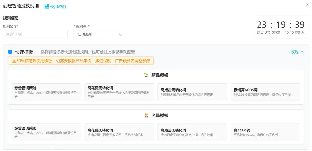 工具内置了针对 “新品期” 和 “稳定期” 等不同产品生命周期的预设策略模板。