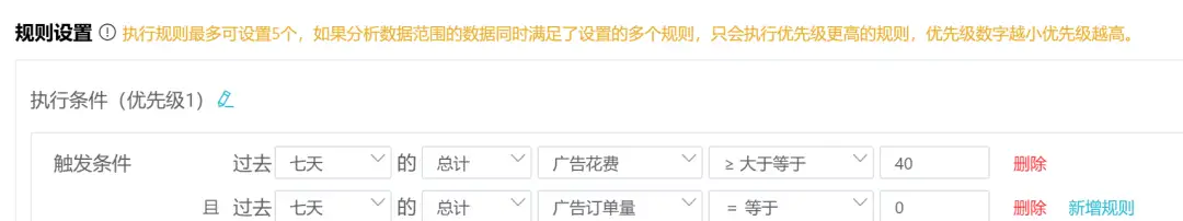 你的产品客单价为$50,你能容忍的最大ACOS是80%,那么你就可以设置规则:自动否定花费超过$50 * 80% = $40却未出单的词。